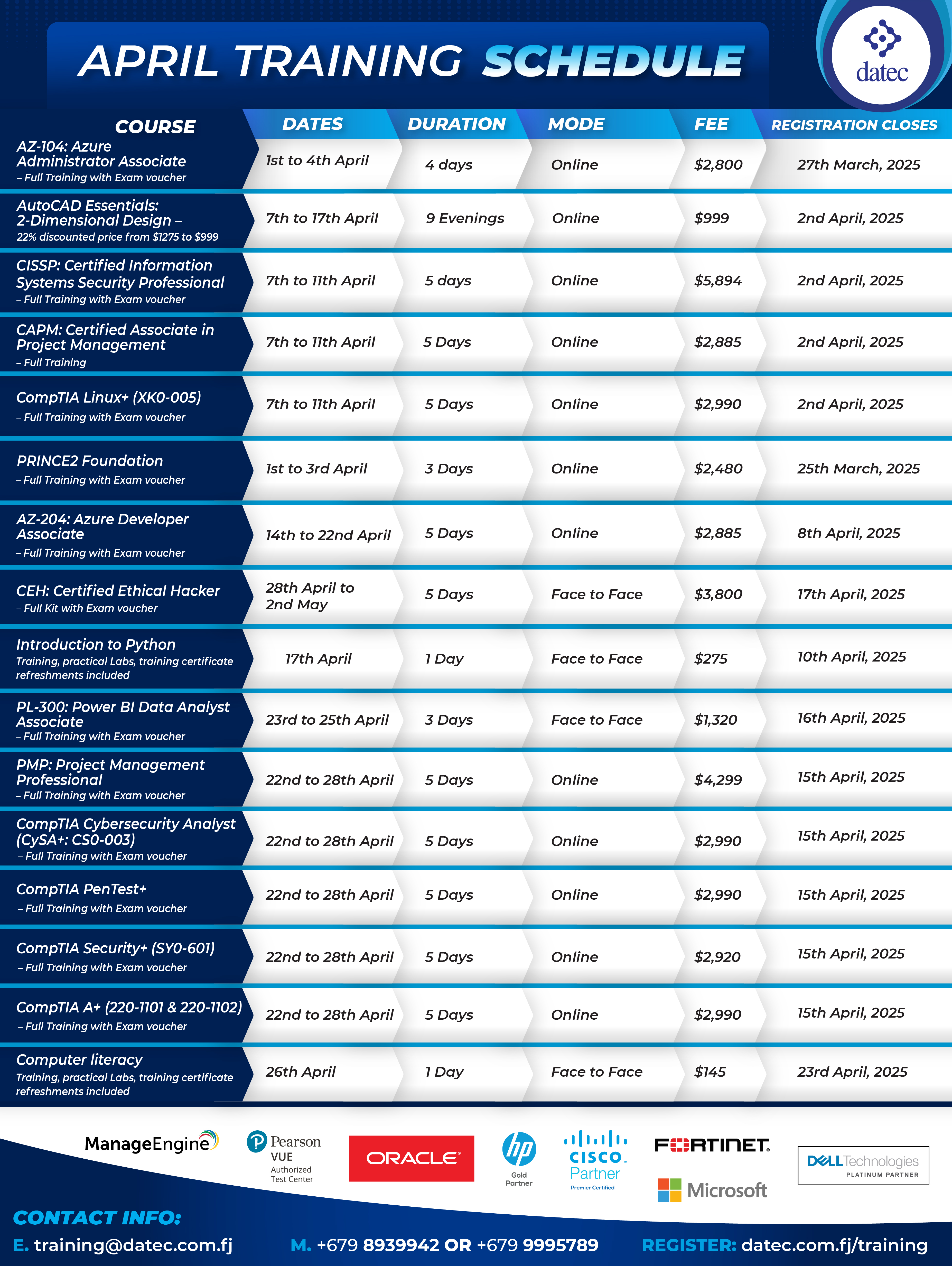Take your career to the next level with our upcoming certification training and short courses this April 2025! Whether you prefer online or in-person learning, our expert-led programs provide a hands-on, practical approach to help you succeed.